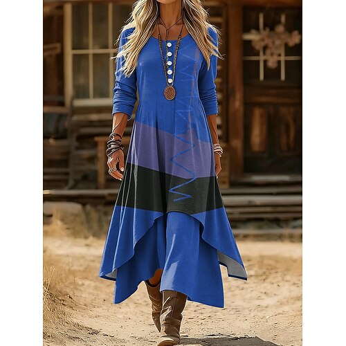 Per donna Abito Midi Abito a Tubino Casual Quotidiano Ferie Vestibilità regolare Grafico Geometrico Manica Lunga Girocollo Blu Giallo Rosso Viola Primavera Inverno