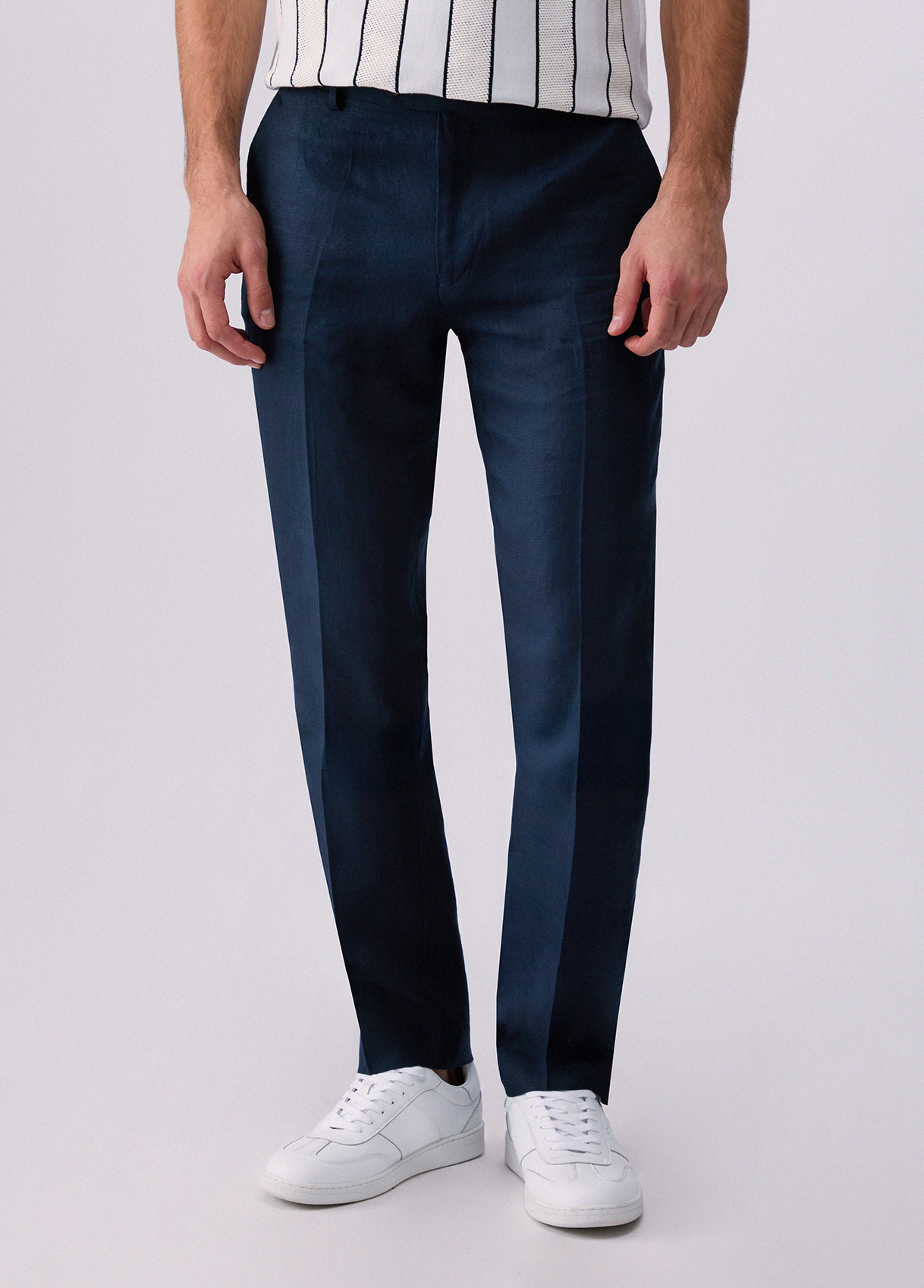 Liu Jo Pantalon 100 % Lin, Bleu, 56