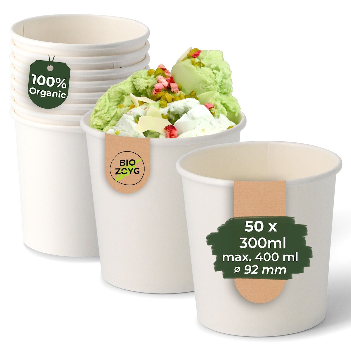 BIOZOYG 50 Stück Eisbecher Pappe 300 ml weiß - umweltfreundlich, recycelbar, plastikfrei - Joghurtbecher, Papierbecher