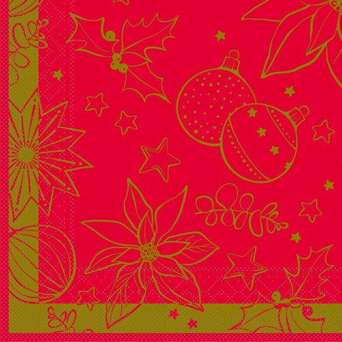 Airlaid Serviette Milan in Rot, 40 x 40 cm, 50 Stück - Mank - Weihnachtssserviette Weihnachtskugeln Amaryllis