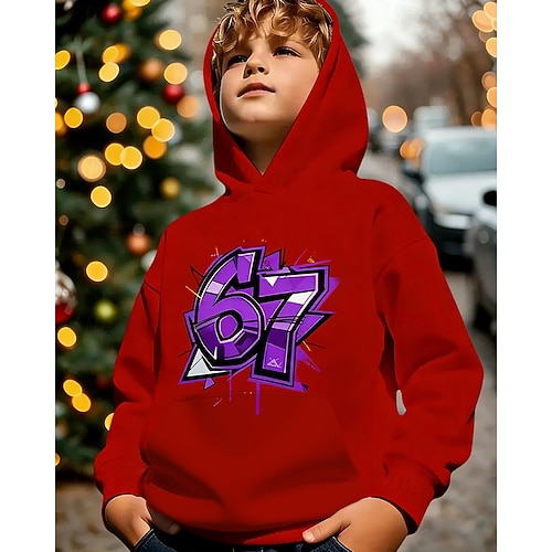 Unisex 3D Grafico Gergo divertente 67 Felpa con Cappuccio Maglione Manica Lunga Stampa 3D Primavera Autunno Sport Moda Streetwear Bambini 4-12 Anni Con cappuccio Casuale Quotidiano All'aperto