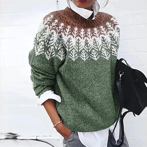 Per donna Maglione Fair Isle Maglione Elegante Vintage Streetwear Geometrico A Coste Girocollo Floreale Manica Lunga Top Regolari Maglia Scuola All'aperto Casa Bianco Rosso Primavera Autunno