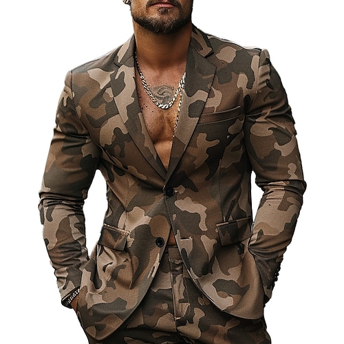 Per uomo Mimetico Manica Lunga Collo ripiegato Casual Militare All'aperto Streetwear Quotidiano Bottoni Stampa 3D Multi-tasche
