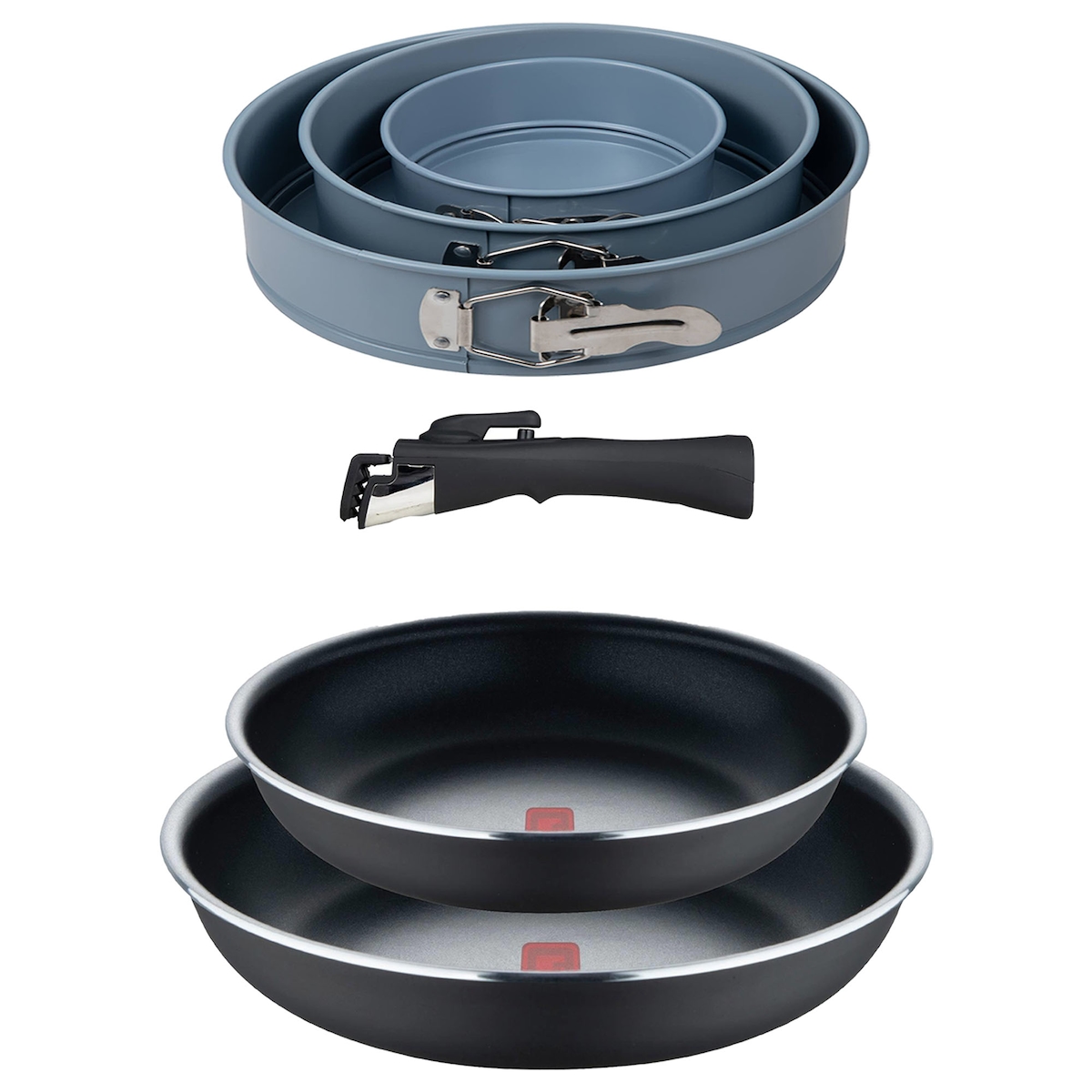 BERGNER - Set mit 2 Bratpfannen Ø24/28cm aus gepresstem Aluminium mit Heat Dot, mit abnehmbarem Griff mit 3-teiliges Set runde Backformen Ø12/18/22 cm