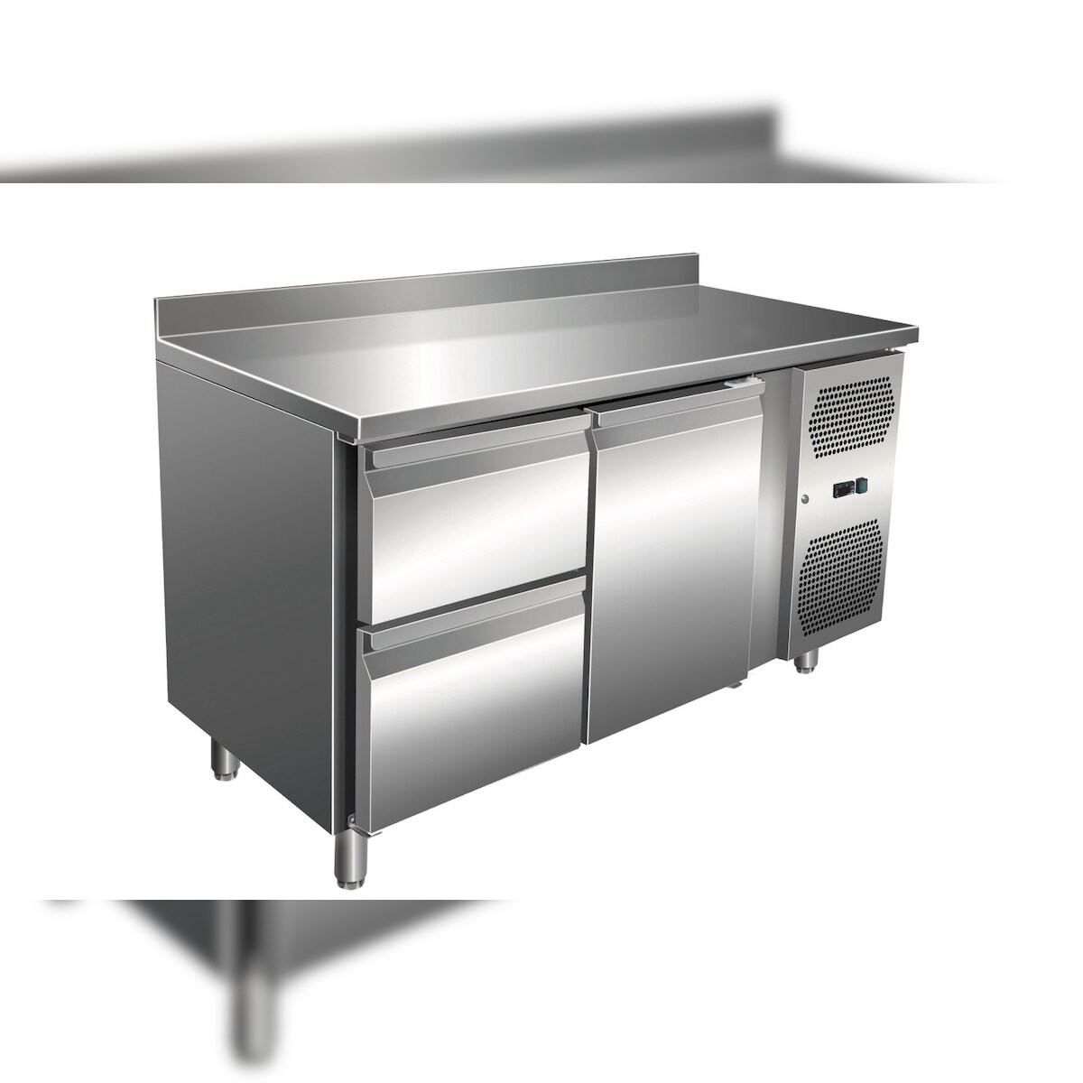 A&S polarny Gastro Edelstahl Kühltisch Kühltheke 1 Tür / 2 Schubladen 115 L -2/+8°C Aufkantung