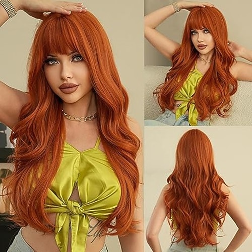 parrucca con frangia lunga riccia ondulata parrucche per donna parrucca sintetica resistente al calore dall'aspetto naturale per l'uso quotidiano alle feste