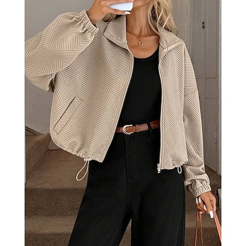 Per donna Felpe con cerniera Semplice Attivo Moda Classico Manica Lunga Collo Alto Top Regolari Streetwear Casuale Uscire Coulisse Cerniera Tasca Nero Marrone Verde Cachi Blu scuro Autunno Inverno
