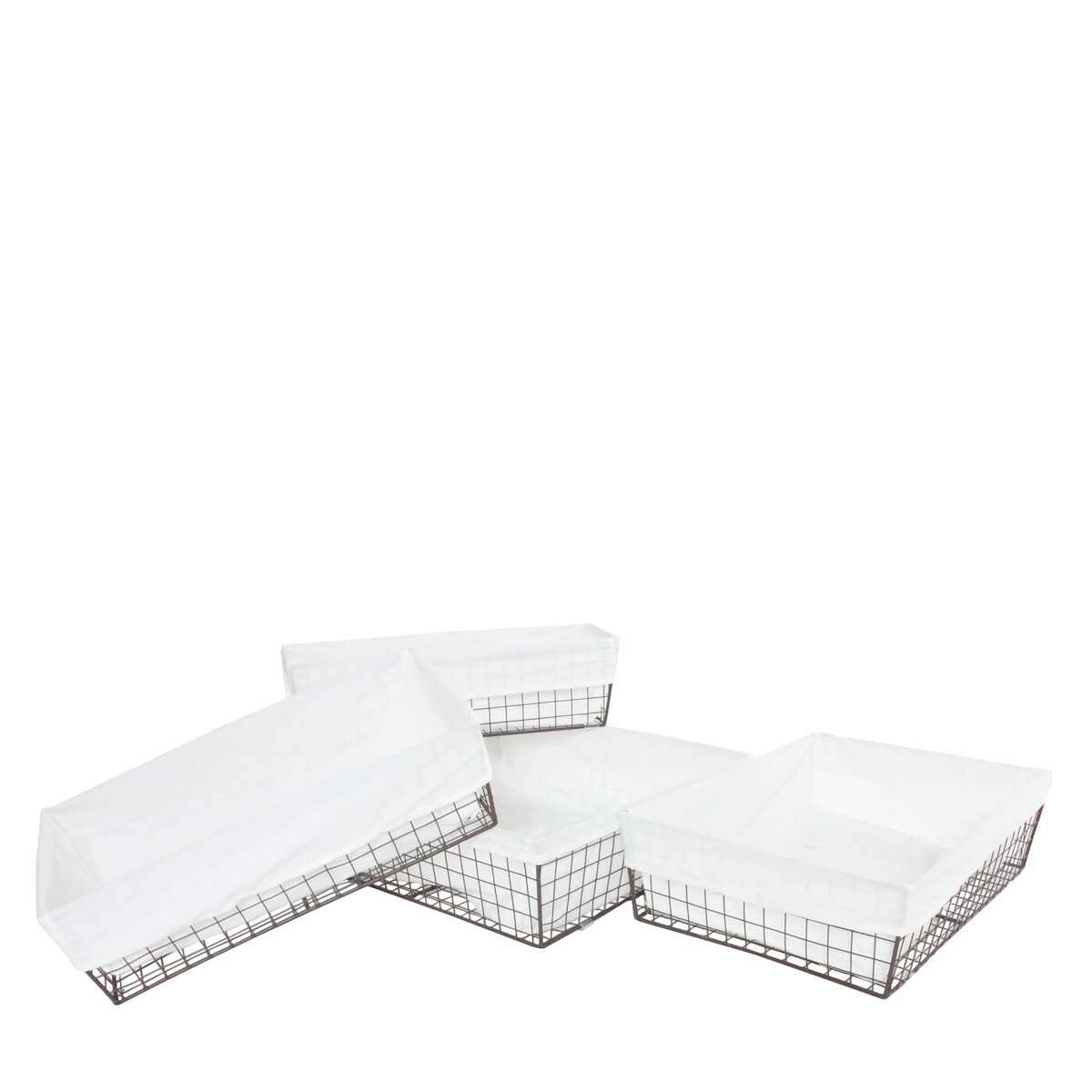 Mendler 4er-Set Regalkorb Tanta, Badkorb Schrankkorb Aufbewahrung Ordnungshelfer, Metall mit Stoffbezug
