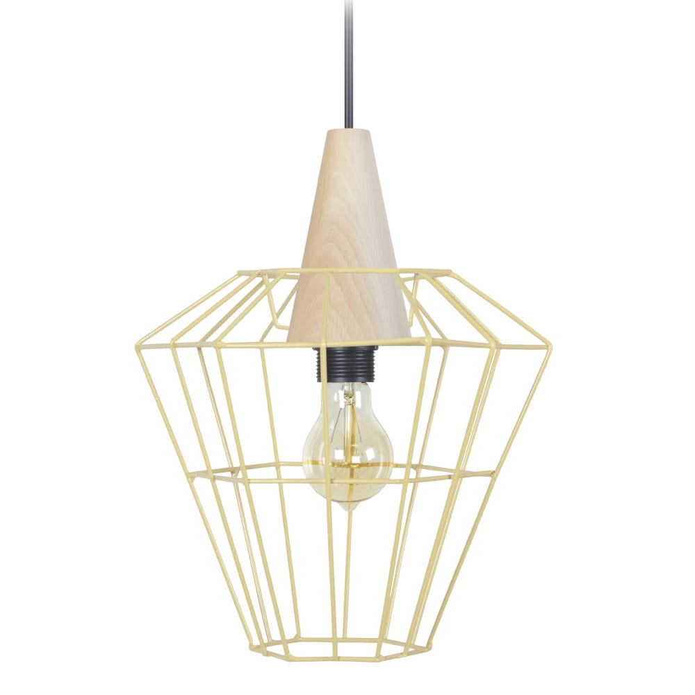 Sospensione legno ; Alt.88cm natural ;Paralume: beige