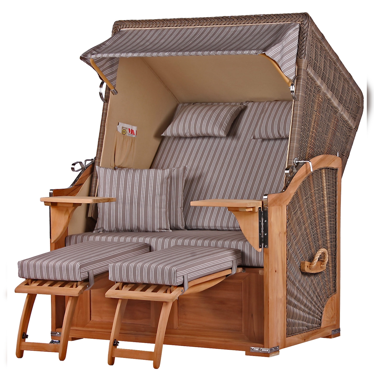 Mr. Deko Strandkorb Komplettset - bene living - Borkum XL Teak - PE grau - Modell 505 - inkl. Liftersystem