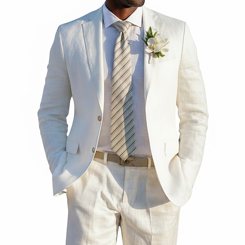 Uomo Casuale Matrimonio in Spiaggia Completi in Lino Bavero classico Nero Bianco Moda Leggero Tinta unita Vestibilità su misura 2 pezzi Monopetto Due Bottoni