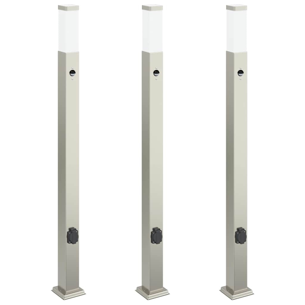 vidaXL Pollerleuchten mit Sensor&Steckdose 3 Stk. 110 cm Edelstahl IP44