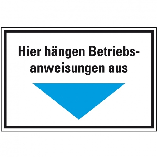 Schild I Hinweisschild Hier hängen Betriebsanweisungen aus, Pfeil blau, Kunststoff, 300x200mm