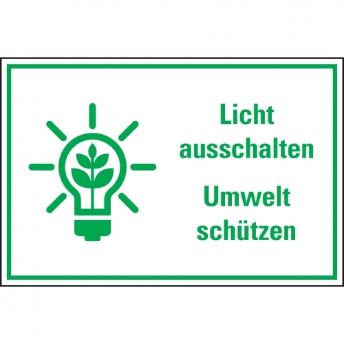 Schild I Kombischild Licht ausschalten Umwelt schützen, Text/Symbol, Kunststoff, 300x200mm
