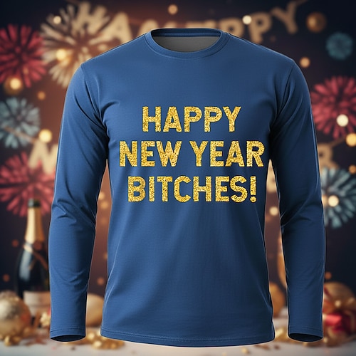 Capodanno uomo felice anno nuovo stronze fuochi d'artificio maglietta manica lunga maglietta girocollo stampa 3d esagerato designer artistico festa strada club abbigliamento invernale abbigliamento s