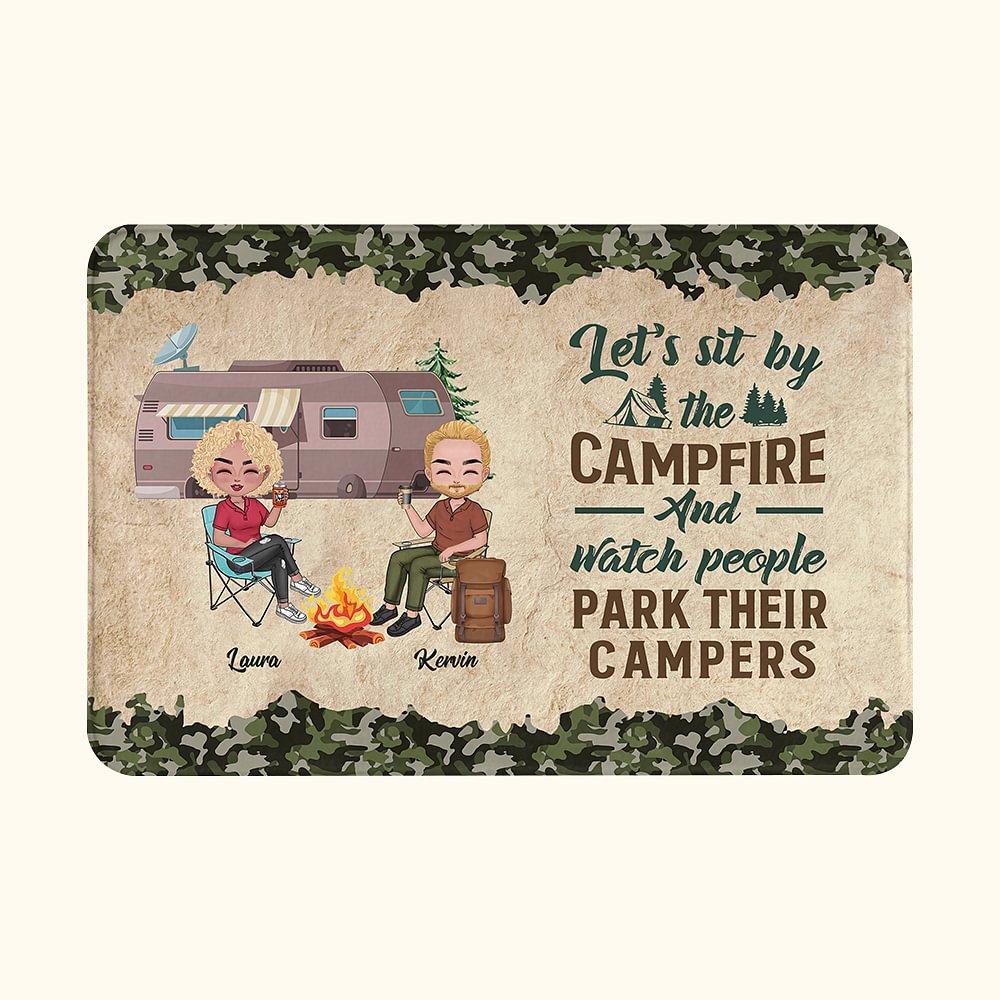 Alfombra de puerta personalizada Let's Sit by the Campfire and Watch People Park Their Campers Regalo para pareja
