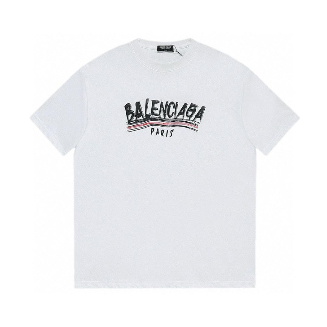 BALENCIAGA Nouvel Arrivage Été Coton Imprimé Col Rond Manches Courtes T-Shirt Blanc F165 cm