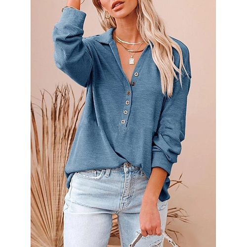 Per donna Camicia popover Camicia casual Camicia di Velluto a Coste Blusa Bottoni Tinta unica Vacanza Elegante Manica Lunga Collo alla coreana Top Regolari Quotidiano All'aperto Ferie Blu Nero Bianco