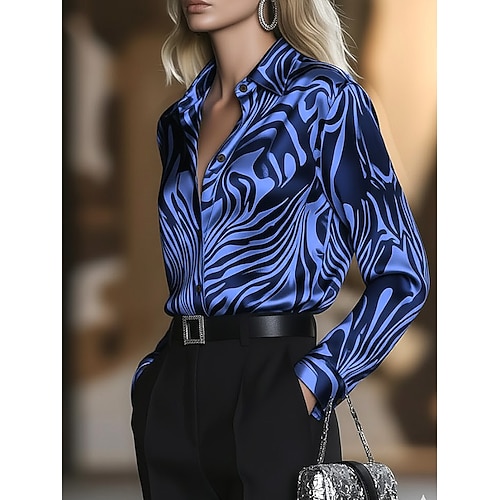 Per donna Camicia Camicia button-down Camicia casual Camicia da Spiaggia Stampato Grafico Elegante Classico Casual Manica Lunga Colletto a Camicia Top Regolari Quotidiano Ferie Uscire Blu Nero Rosa