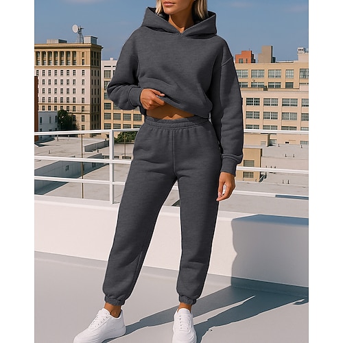 Per donna Tuta da 2 pezzi Felpa con cappuccio Lounge Set di tute da ginnastica Tinta unita Completo Abbigliamento Autunno Nero Bianco Allenamento All'aperto Viaggio Vita Alta Leggero Di tendenza