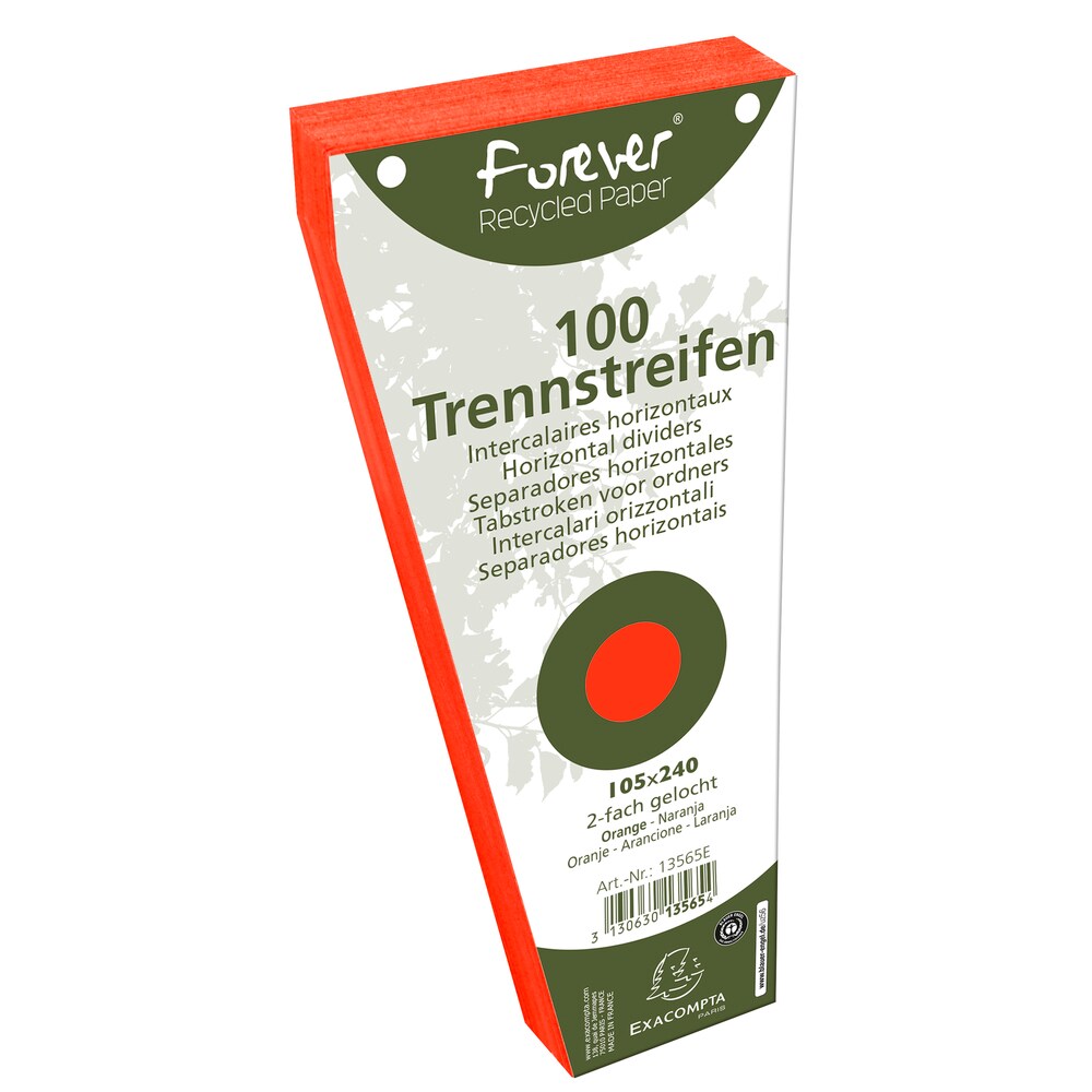 Exacompta Packung mit 100 Trennstreifen, gelocht, trapezförmig aus Recycling-Papier 180g/qm, 105x240mm - Forever