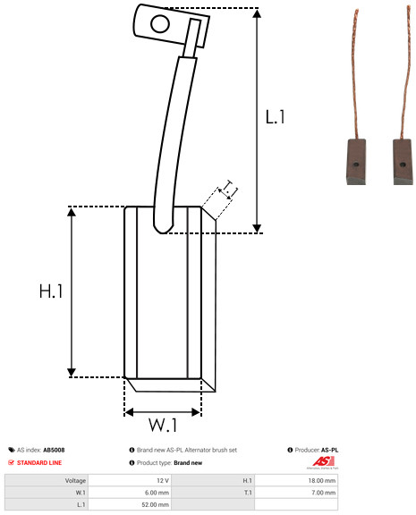 AS-PL Kohlebürste, Generator AB5008 Universal 12V für MITSUBISHI MAZDA NISSAN 0866-24-541 MD602750 MD602019