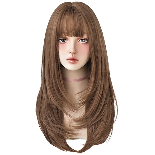 parrucche rosse con frangia parrucca lunga dritta sintetica rosso bordeaux per feste da donna e parrucca rosso brillante cosplay