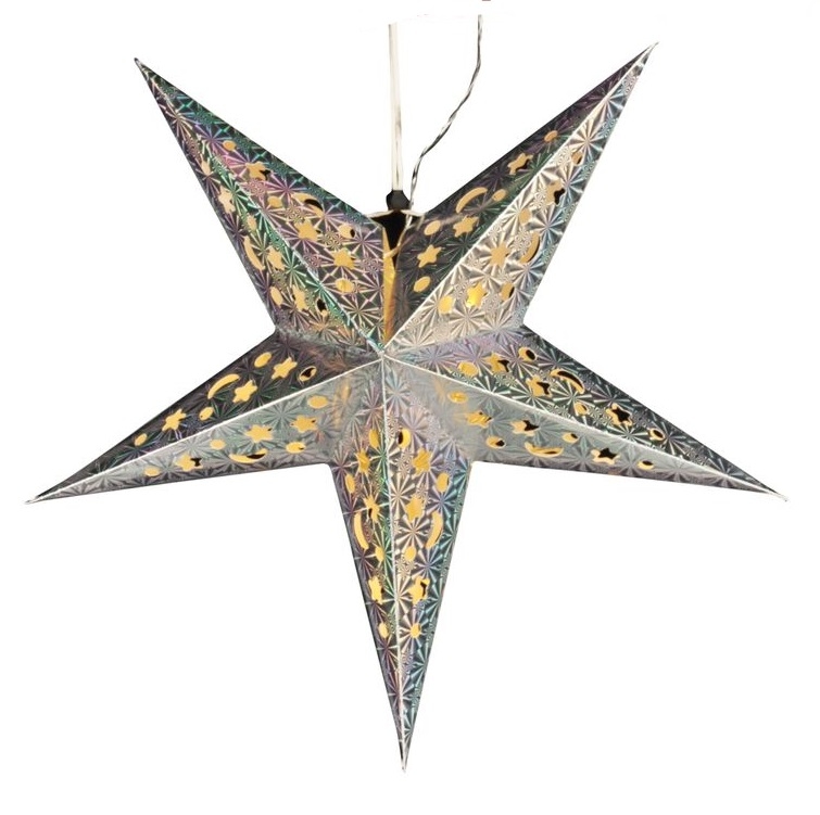 Papierstern mit LED Beleuchtung Adventstern Weihnachtsstern Leuchtstern 43 cm Silber