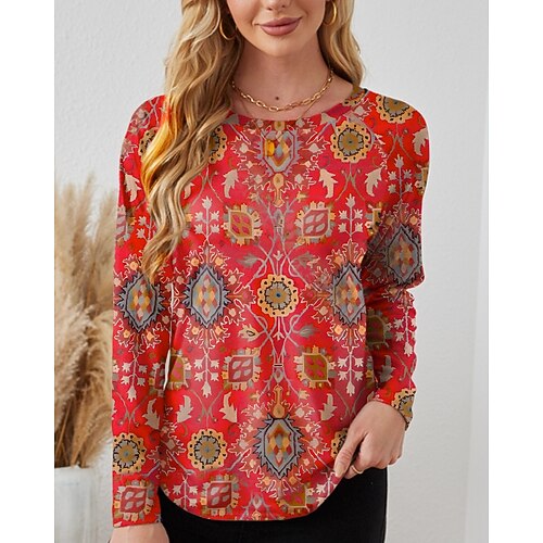 T Shirt Donna Teschi Grafica Moda Casual Manica Lunga Collo Regolare Maglie Quotidiane Stampa Weekend Rossa Blu Viola Verde Khaki Primavera Autunno Inverno