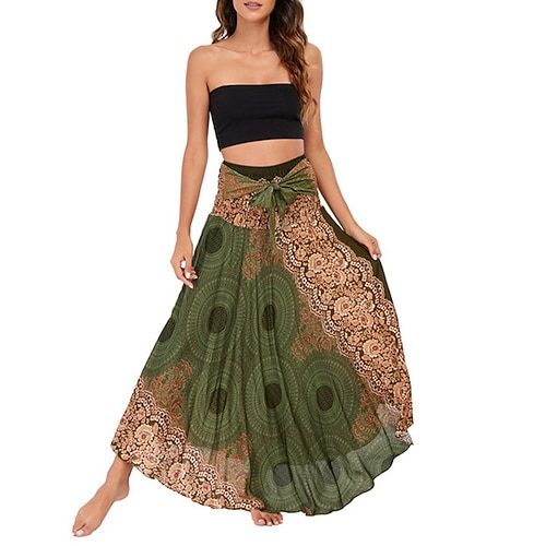Per donna Gonna Linea A Svasato Casual Boho Maxi Vita Alta Gonne Floreale Stampato Micro-elastico Vacanza Ferie Bianco Vino Blu reale Verde scuro Estate Poliestere