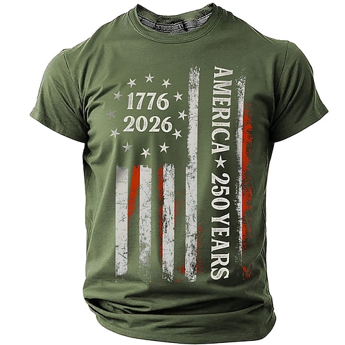 250° anniversario dell'America Per uomo Bandiera Americana 1776 Maglietta Manica Corta maglietta Stampa 3D Girocollo Camicia Quotidiano Militare Quotidiano Streetwear Blu Nero Verde militare Estate