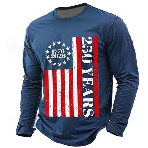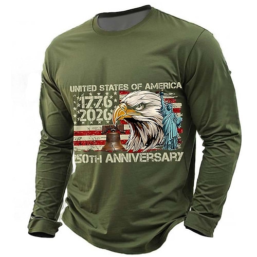 250° anniversario dell'America Per uomo 250° anniversario degli Stati Uniti Maglietta Manica Lunga maglietta Stampa 3D Girocollo Camicia Quotidiano Casual Quotidiano Viaggio Feste Blu Nero Verde