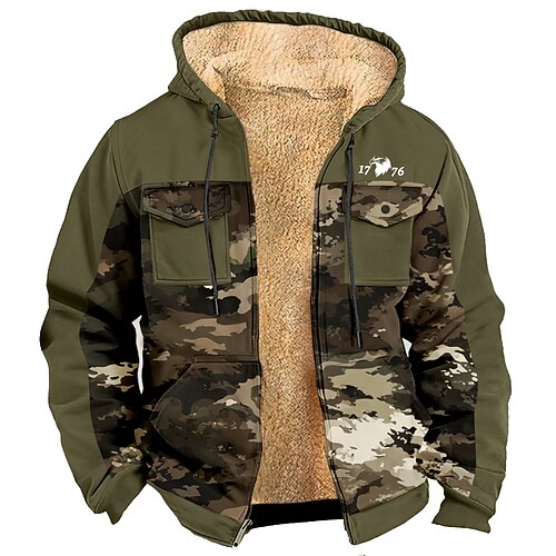 Per uomo Mimetico 1776 Pile Felpa con Cappuccio Giacca di pelle Felpa Moda Cool Quotidiano Vintage Retrò Con Cappuccio All'aperto Caccia Nero Marrone Cachi Verde militare Cerniera Tasca Autunno