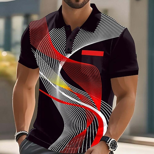 Per uomo Geometrico Polo Manica Corta Magliette polo Camicie con Colletto Casual All'aperto Athleisure Abbigliamento quotidiano Tasca Stampa 3D Bottoni Estate Rosso Blu Arancione
