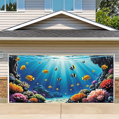 arazzo Copertura per porta del garage Grande appeso Tartaruga di mare Squali Tropicale Colorato Da serata All'aperto Sfondi di ripresa Porta d'ingresso Decorazioni Parete Porta Sfondo