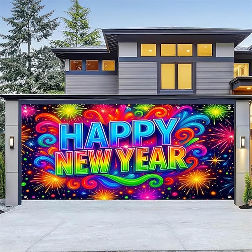 Capodanno arazzo Copertura per porta del garage Grande appeso Buon anno 2026 Carino 3D Da serata All'aperto Vacanze Sfondi di ripresa Yarda Arredamento per la casa