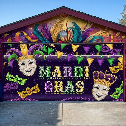 Martedì grasso Copertura per porta del garage Grande appeso Pagliaccio Lusso 3D Da serata All'aperto Sfondi di ripresa Porta d'ingresso Stile Carnevale di Venezia Arredamento per la casa