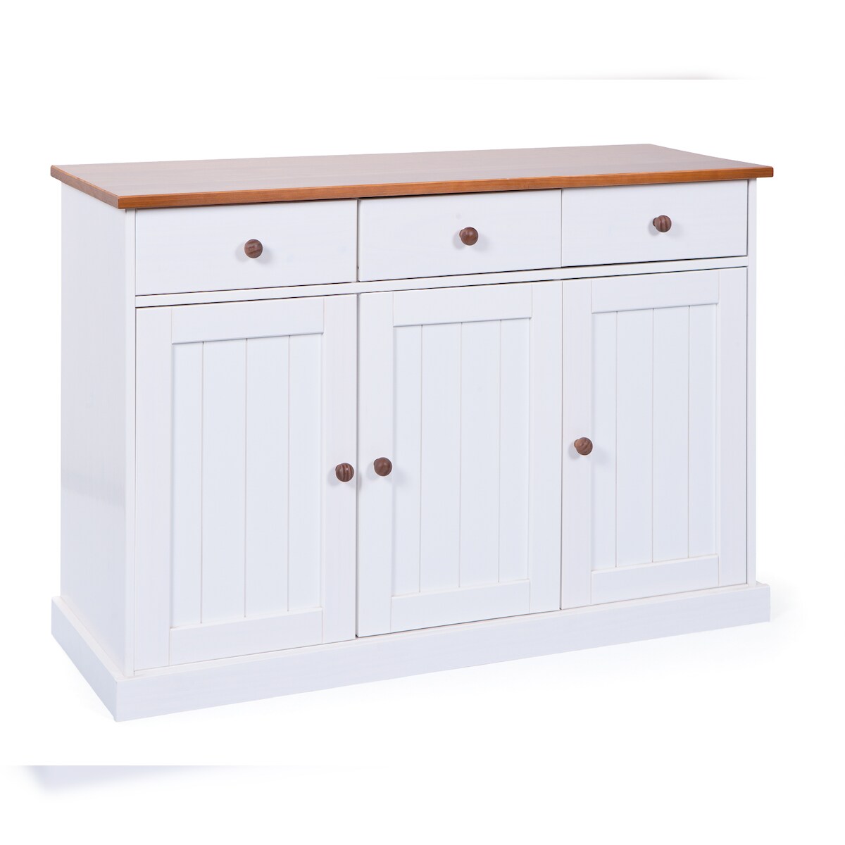 Wright Sideboard 3 Türen, 3 Schubladen, weiss, braun.
