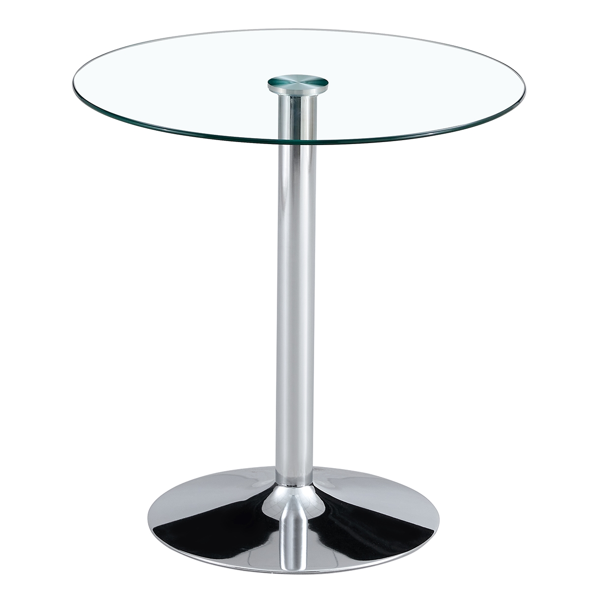 OKWISH Bartisch Glastisch rund 89x89x92 cm Transparent+Silber mit stabiler Metallbasis, minimalistisches Design, pflegeleichte Tischplatte für Bar und Lounge
