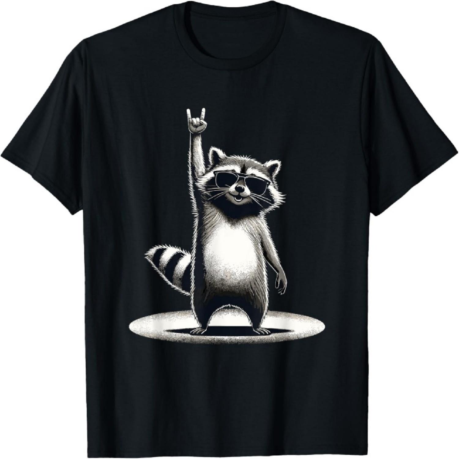 Retro Tvättbjörn Rockmusik Gåva Män Barn Kvinnor Rolig Tvättbjörns T-shirt cm svart