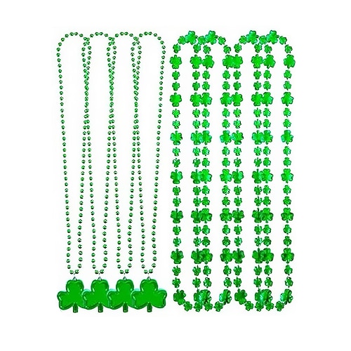 set di collane multi-pezzo per il giorno di San Patrizio da donna, collane a strati con perline di trifoglio verde, confezione combinata multi-stile in plastica, accessori per feste irlandesi festive da donna