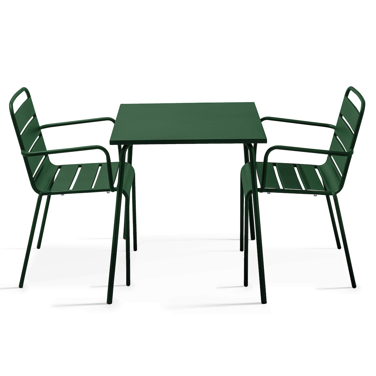 Oviala Business Bistrogartentisch und 2 Sessel aus pulverbeschichtetem Stahl Waldgrün