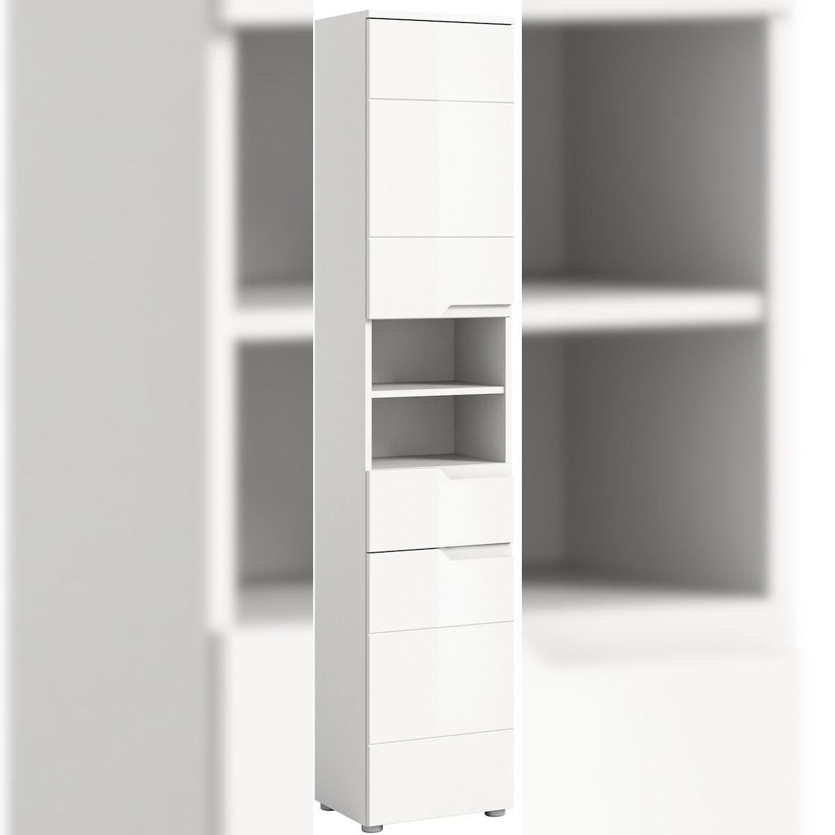 Ebuy24 Solero Hochschrank Bad 2 Türen, 1 Schublade, 2 Regale Weiß hochglanz, weiß.