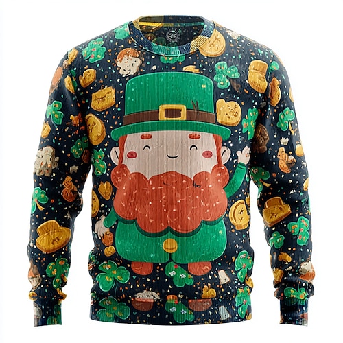 San Patrizio Per uomo Trifoglio Maglione Maglieria Girocollo Casual Quotidiano Vacanza Festival Tenere al caldo Manica Lunga Primavera Autunno Inverno verde 1# Verde 2# Verde 3#