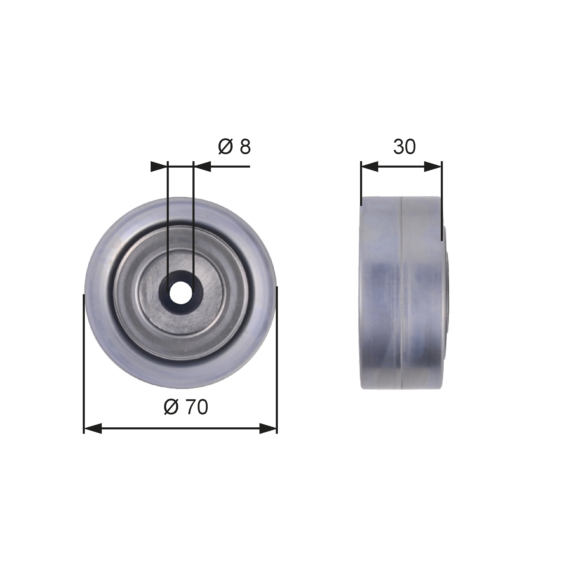 GATES Umlenk-/Führungsrolle, Keilrippenriemen DriveAlign® T36386 70mm für VW AUDI MAN 03G145276A 65.95801-0005