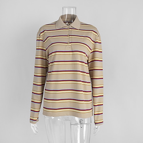 Per donna Blusa A righe Elegante Bohemien Vintage Manica Lunga Colletto a Camicia Top Regolari Quotidiano Ferie Uscire Bottoni Rosso Marrone chiaro Marrone Cachi Primavera Autunno