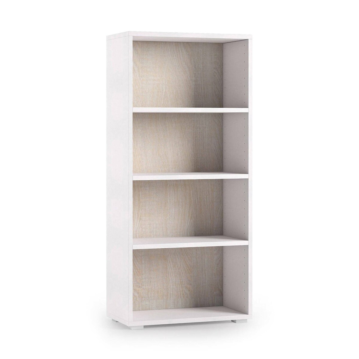 Dmora Bücherregal Giacinto, Bibliothek mit 3 verstellbaren Einlegeböden, Bücherregal, Schrankwand mit Regalen, 60x30h130 cm, Weiß und Eiche