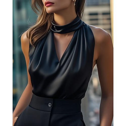 Per donna Camicia Elegant Raso/Satin Blusa Semplice Elegante Senza Maniche All'americana Top Regolari Quotidiano Lavoro Ferie Arricciato Nero Estate Primavera Autunno