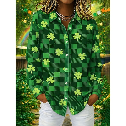 San Patrizio Per donna Camicia Blusa Grafico Trifoglio Vintage Elegante Casual Manica Lunga Colletto a Camicia Top Regolari Quotidiano Ferie Bottoni Stampato Bianco Arancione Verde Estate Primavera
