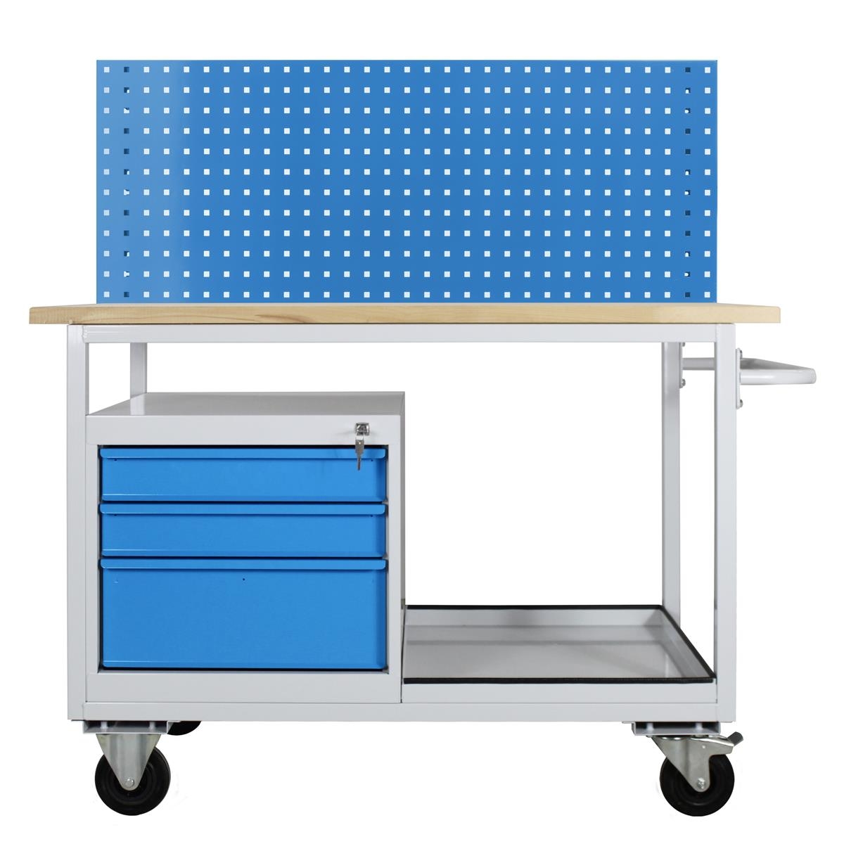 Chariot à outils mobile HBM avec plan de travail en bois - 146 cm - noir